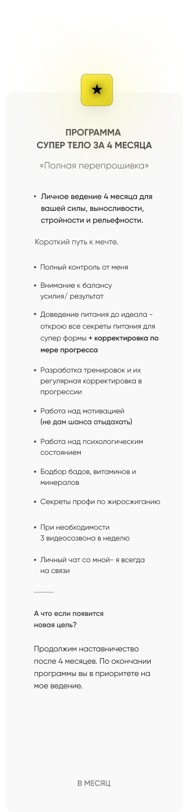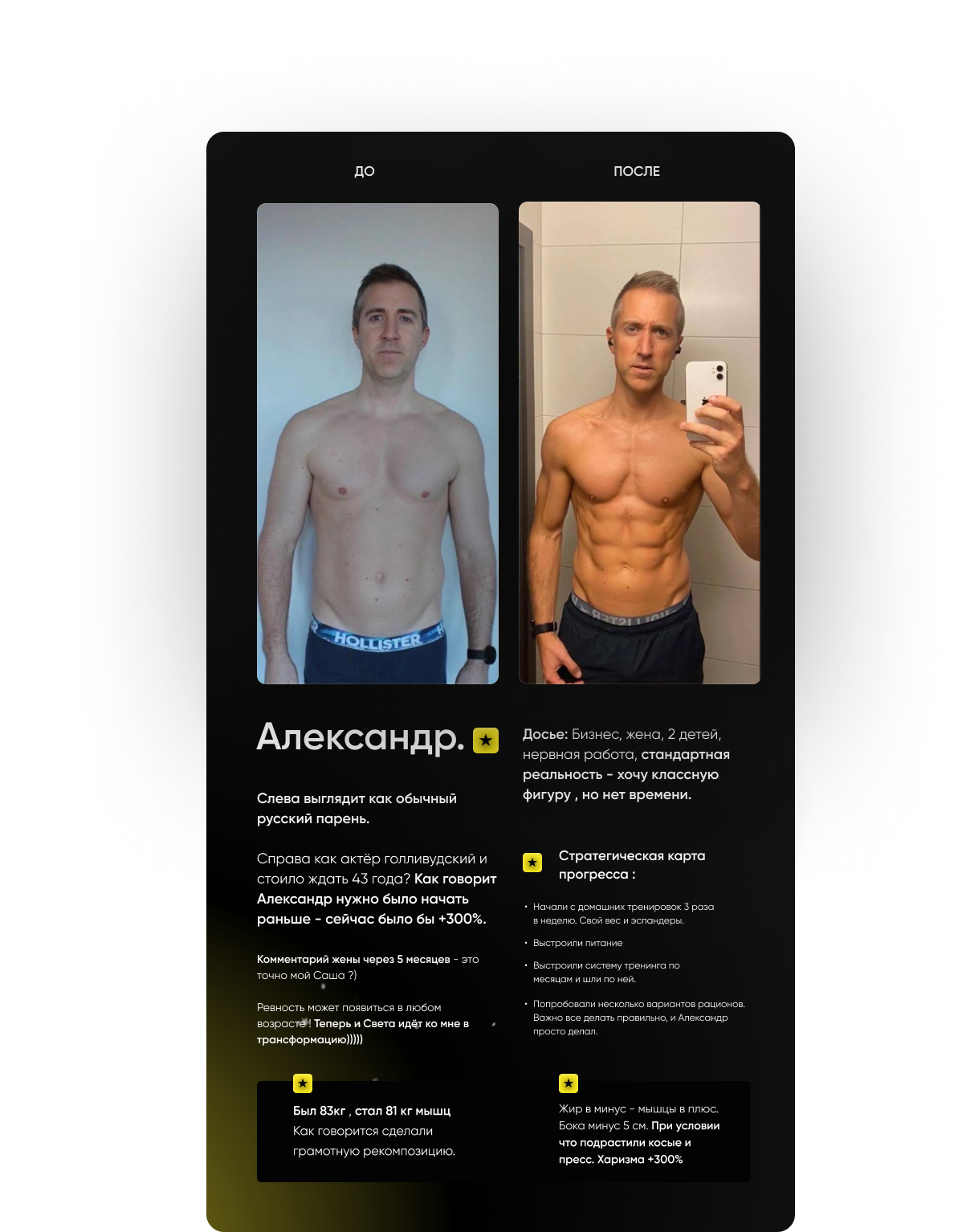 Самое важное и ценное в нашей жизни – это здоровье. Самое дорогое, что у нас есть – это время. Часто мы не находим и 30 минут за день, чтобы позаботиться о своем теле. Мы не задумываемся о том, что наше тело – это гоночный болид, который позволяет нам совершать действия, справляться с трудностями, идти к цели, претворять в жизнь наши мечты и исполнять желания. Когда мы занимаемся физической активностью, мы совершаем равноценный обмен, меняя «самое дорогое» на «бесценное» – 30 минут нашего времени в обмен на годы активной и полноценной жизни! По-моему, обменять «минуты» на «года» – это очень разумно! Минуты в обмен на здоровье суставов, мобильность, подвижность в 70-80-90 лет и еще 35 плюсов – более чем разумно! К сожалению, нас никто не учил тому, что связанные со здоровьем проблемы можно предупредить физической активностью и здоровым питанием. Мы воспринимаем наше здоровое тело, как данность. Но любому Мерседесу нужен уход. А наше тело в млн раз сложнее! Вот и ответ на вопрос. Выгодный обмен – минуты в обмен на годы жизни, минуты в обмен на тонны уверенности в себе, минуты в обмен на возможность выбирать самому, а не ждать пока выберут тебя!
